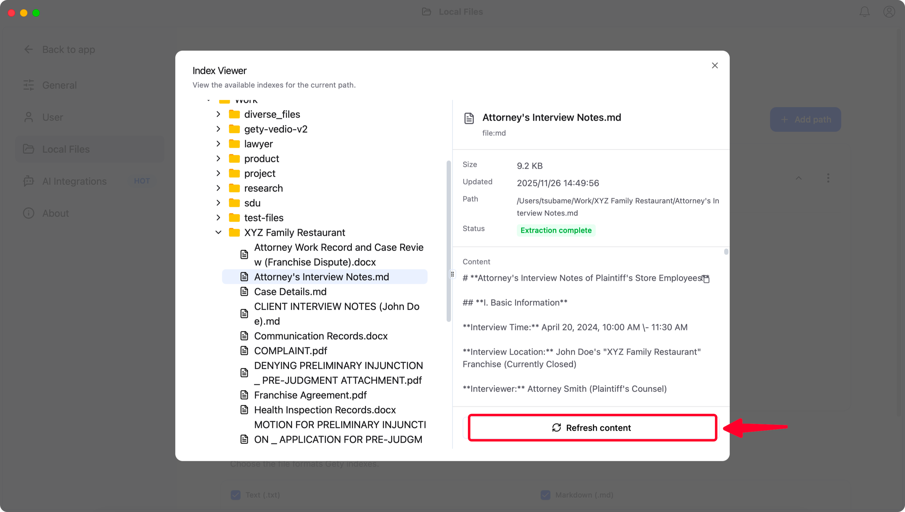 If the status shows "Extraction Complete" but you still can't find the target keywords, click "Index Viewer" to check the preview. If the preview is indeed missing the keyword content, this means the extraction for this file type needs improvement. Please contact hi@gety.ai with feedback, and we'll continue to optimize the extractor for this file type.
