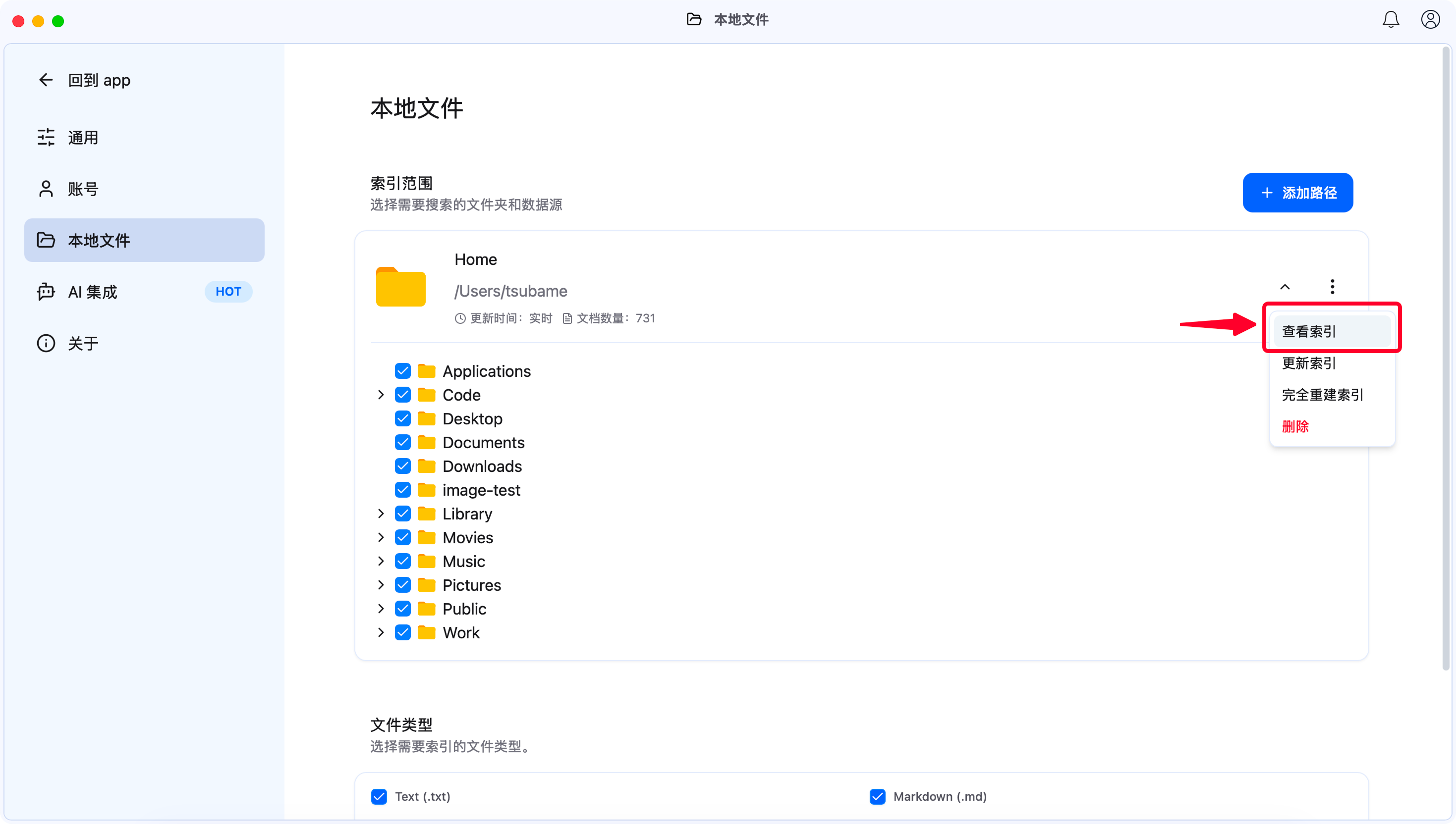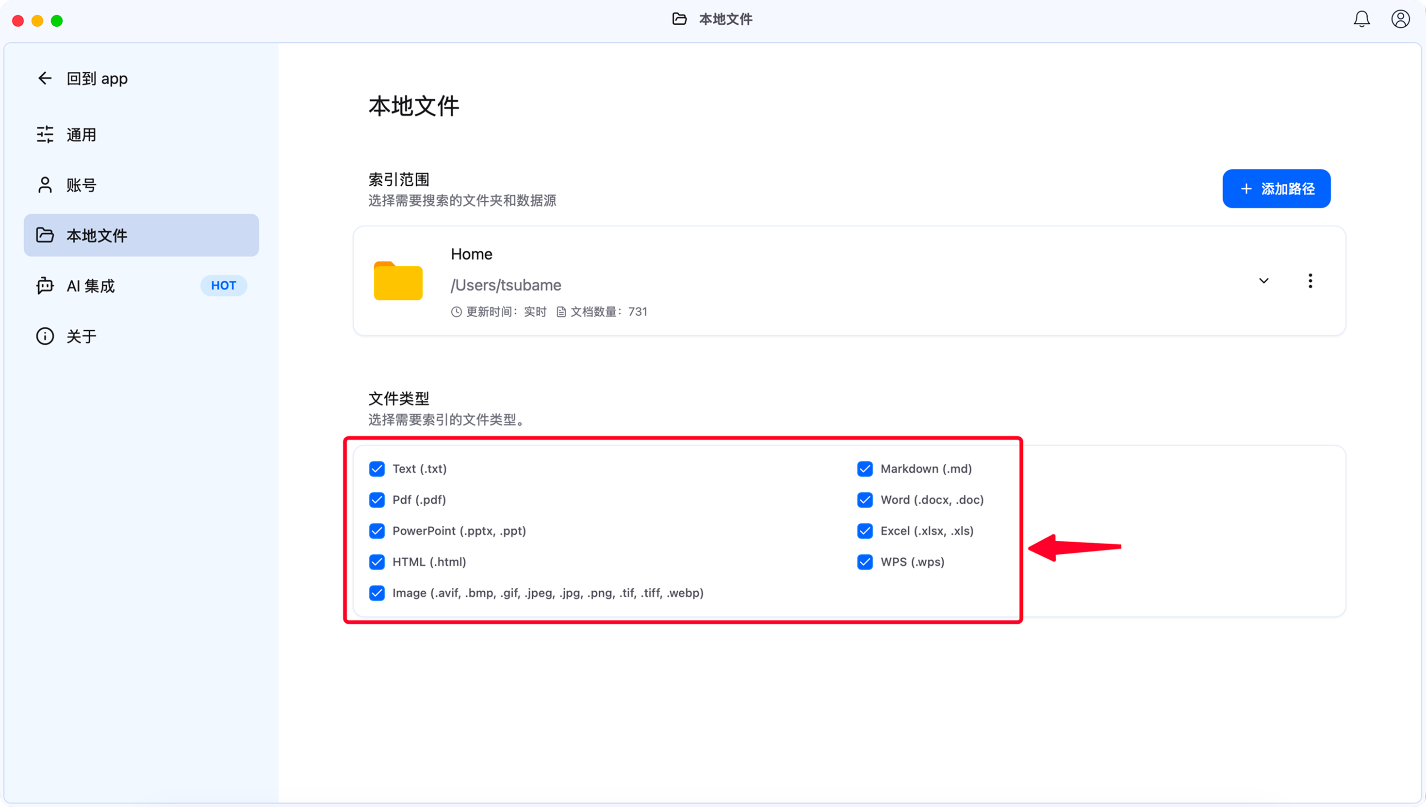 - 路径:前往 设置 -> 本地文件 -> 索引范围。