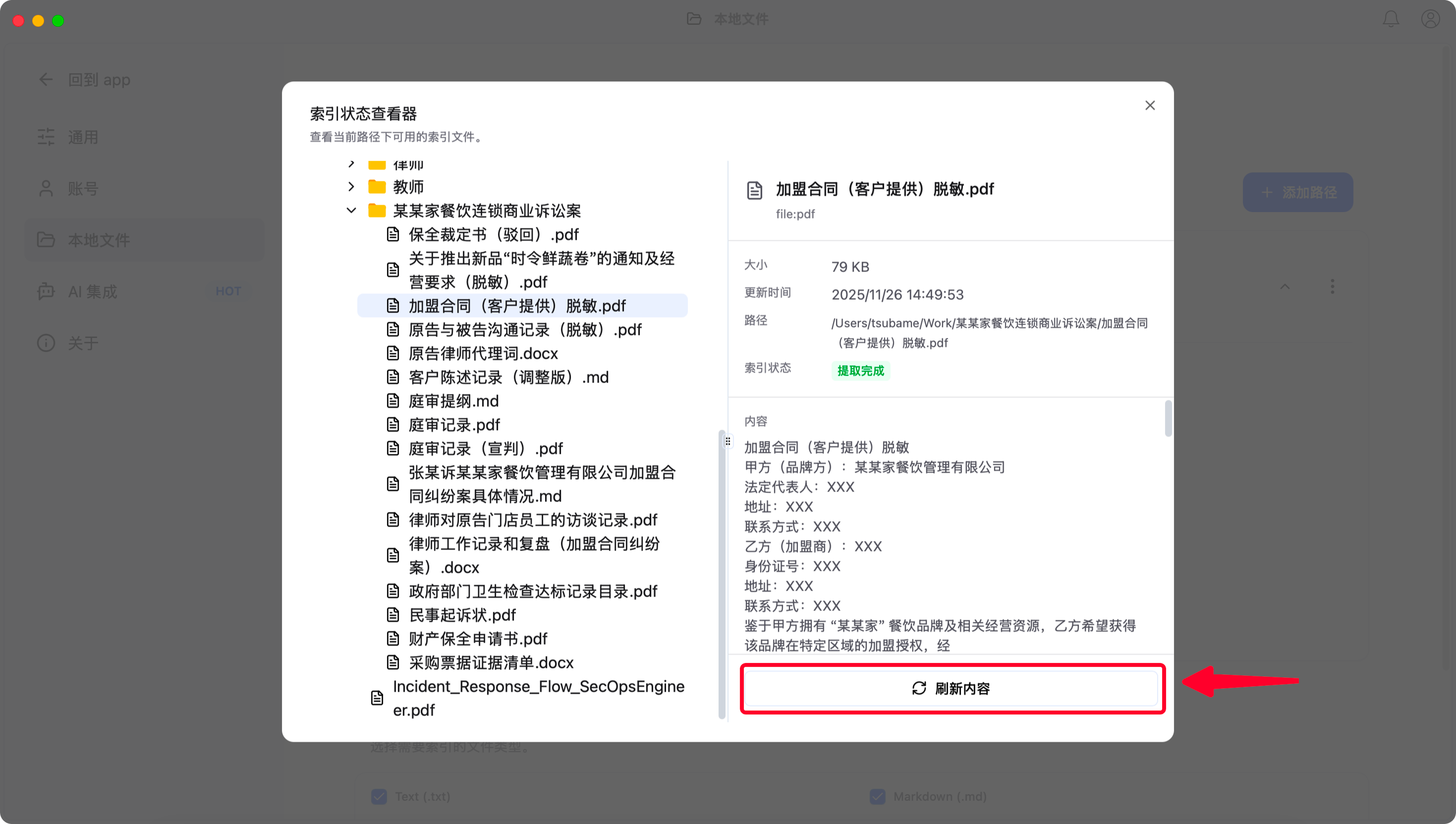 - 情况二:能搜到文件名,但搜不到内容 说明内容提取可能出现异常。请执行下方的手动刷新流程。